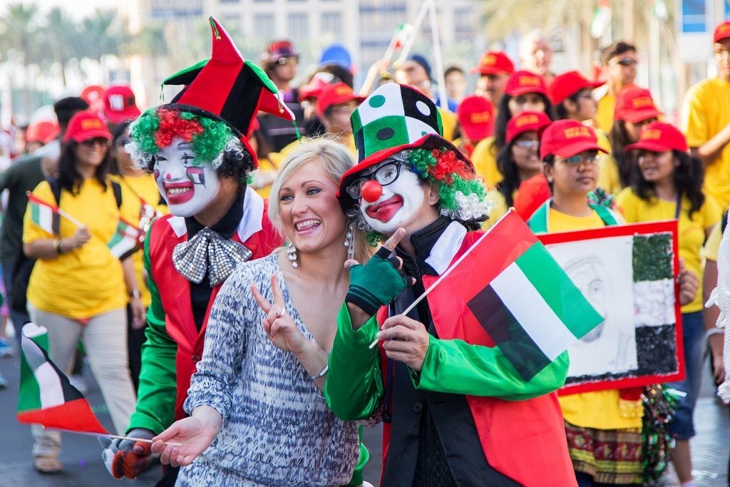 National Day празднуют с момента подписания договора об объединении 7 эмиратов в единое государство — ОАЭ. Случилось это 2 декабря 1971 года. Национальный день в ОАЭ всегда проходит в виде масштабного праздника с парадами, концертами, увлекательными шоу и фейерверками. В этот день все вокруг украшают в палитре флага — дома, парки, пляжи. Эти дни — 2 и 3 декабря — объявлены выходными.